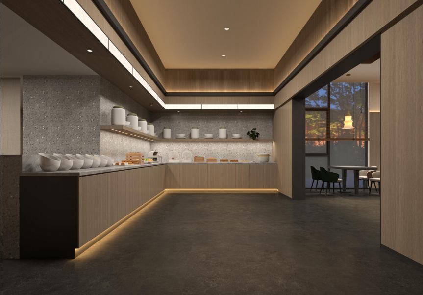 酒店早餐厅采用全新明档设计,为更好地完美契合商旅人士的作息节奏,开放时间从7点延迟到12点。