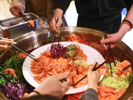 雨生百谷,渔启新航。4月20日谷雨,天津富力万达文华酒店举办「开鱼宴」。活动中,主厨现场分切整条冰鲜三文鱼,搭配寓意吉祥的“捞鱼生”互动。天津茉莉花茶拼配工艺带来非遗文化,并现场展示及邀请宾客体验拼配工艺及茶礼包装,以茶为媒,唤醒暮春舌尖雅韵。