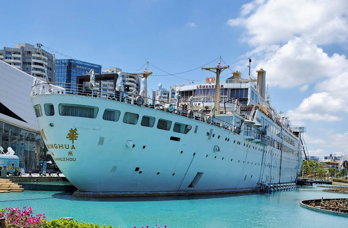 属蛇口地标之一,明华轮的雄伟身影与城市的繁华交相辉映