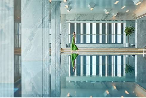 及室内无边际恒温泳池,可从容其间,将身心调至舒缓节奏