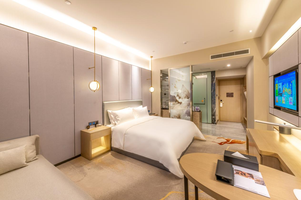 一进房间,直接被酷到尖叫!工业风混搭 ins 元素的装修,随手一拍都是杂志大片。超大落地窗把清远的山水或城景框成天然背景,清晨被阳光唤醒,推窗就是青山云雾;夜晚伴着星光,窝在超软沙发上追剧,爽到飞起!房间里智能设备齐全,灯光、空调、窗帘语音操控,科技感直接拉满。浴室干湿分离,定制香氛洗护用品,洗完澡浑身香喷喷,精致到头发丝!