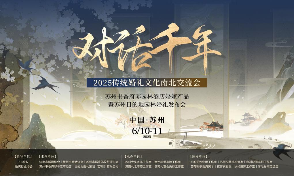 6月10日至11日,“对话千年”2025传统婚礼文化南北交流会暨苏州目的地园林婚礼发布会在苏州书香府邸平江府酒店盛大举行。以及苏州目的地园林婚礼发布会,活动旨在传承和弘扬中国传统文化,通过展示朝代的婚礼仪式,让参与者体验传统婚礼文化的独特魅力。这场汇聚200余位行业精英的盛会,以传承与创新为脉络,深度探讨传统婚礼文化在现代婚嫁产业中的焕新之路。