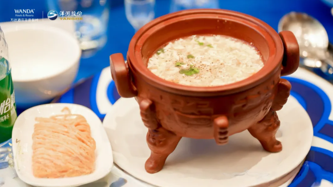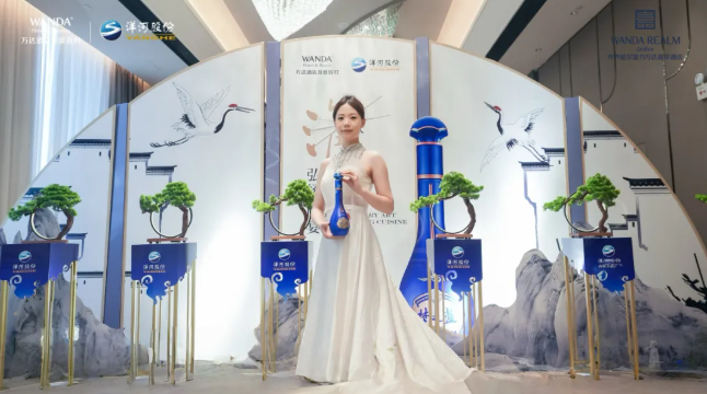 万达酒店明星大厨现场以淮扬技艺演绎创新菜「脆皮雪花和牛肉」,精湛手法搭配绵柔醇香的洋河梦之蓝M6+,独特口感令嘉宾赞叹。