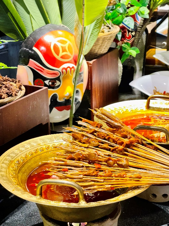 此外,餐厅每日限量供应“川味烤乳猪”,外皮酥脆、肉质鲜嫩,由主厨现场派送,为食客带来惊喜体验。自助餐特色升级,五星级品质再突破,本次川渝美食节不仅聚焦菜品,更以“高性价比”“多元体验”“贴心服务”为核心,打造差异化自助餐优势。用餐区还细心布置川剧脸谱、竹编灯笼等元素,背景音乐循环播放巴蜀民谣。