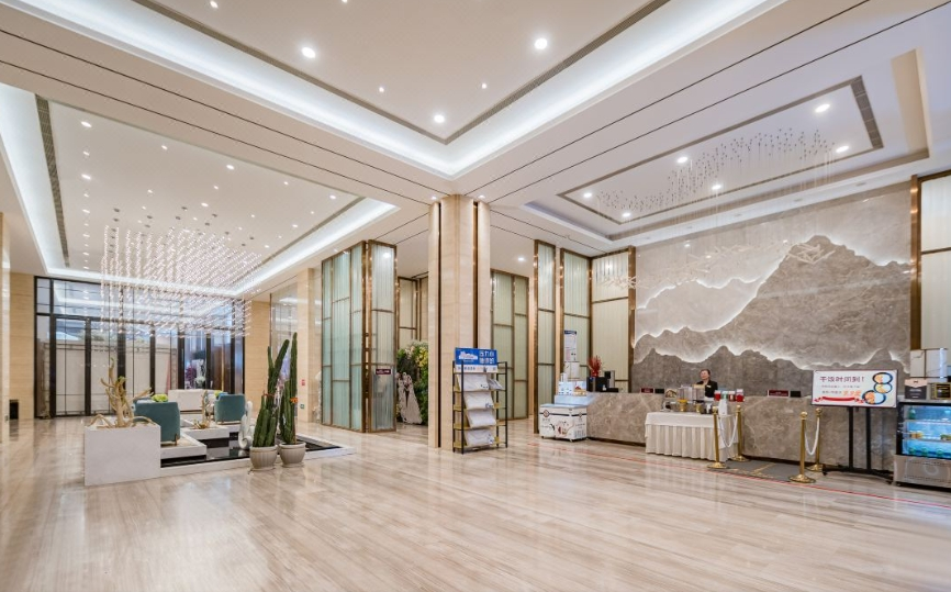 设计:澳洲雅阁酒店集团管理,外观“天鹅堡”欧式线条,大堂8米挑高水晶灯与青县剪纸艺术装置交相辉映。