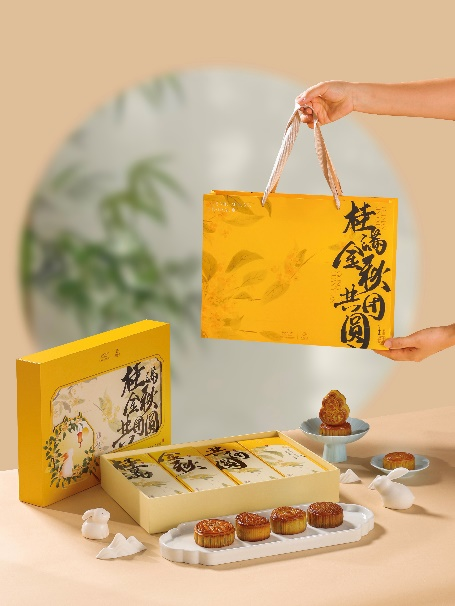 礼盒设计深植于传统文化,以现代国潮美学焕新表达中秋意境。“桂满金秋”礼盒以金色秋桂为灵感,传递丰收的喜悦与祝福;“花颜月韵”礼盒则以精致花卉勾勒月下诗意,尽显东方雅致韵味。顶配的 “鎏光映月”礼盒不仅口味稀缺独特,更额外附赠定制新中式茶具一套,巧妙融合品茗与赏月的中式雅趣,极大提升了礼盒的文化收藏价值与使用体验,成为彰显品味的佳节臻品。