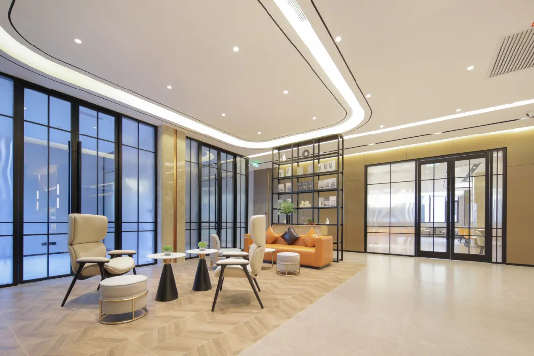 不同款式的沙发和座椅构成开放式布局的公区,充满现代英伦的设计元素,皮质沙发和座椅、色彩明快的挂画,增添了品质感和艺术感。轻松雅致是主旋律,这里总能让人找到适合自己的小憩空间。