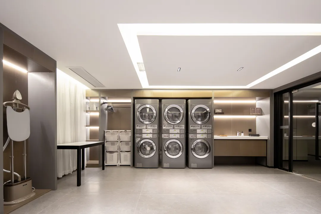 除了场景设计,智能化服务也成为吸客利器,30秒自助入住,机器人送物,24小时健身房、自助洗衣烘干机……这些细节让“居家感”与“品质感”并存,甚至有独自出差的年轻人在社交区结识了同行业伙伴,碰撞出合作火花。