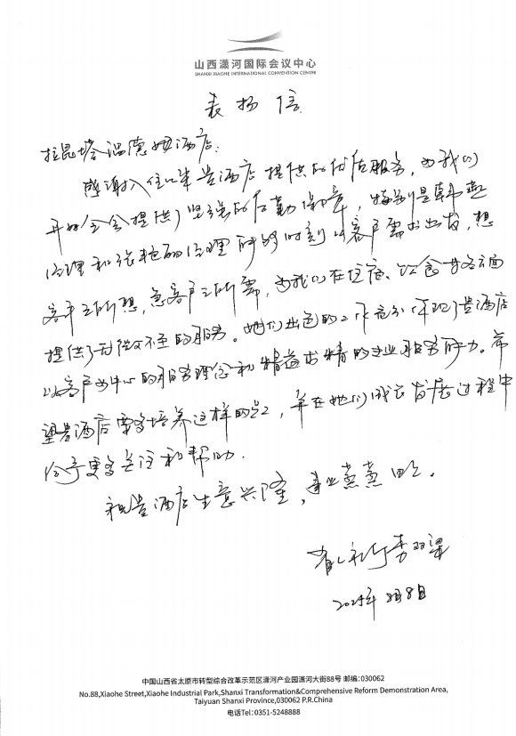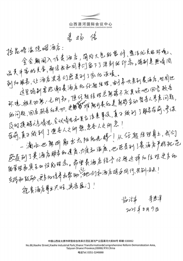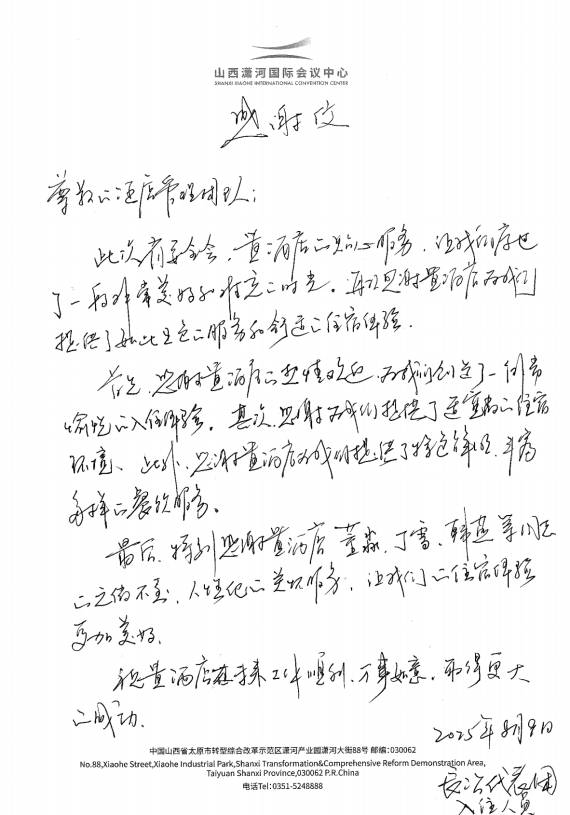 此次政府会议的成功接待,再次印证了山西潇河新城酒店群在高端会务领域的实力。未来,山西潇河新城酒店群将继续发挥品牌优势,以卓越的服务品质和专业的团队,助力更多重要会议及活动的成功举办,成为区域会务接待的标杆酒店。
