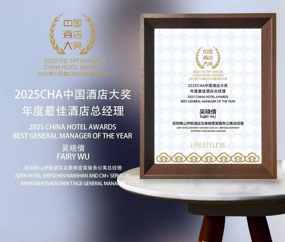 深圳南山伊敦酒店及泰格壹棠服务公寓总经理吴晓倩女士荣获“2025 CHA中国酒店大奖年度最佳酒店总经理”