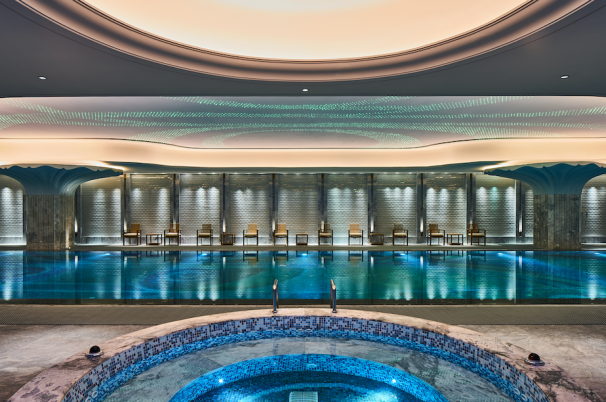 酒店还配有28℃C恒温室内泳池配备专业水质净化系统每天定时循环过滤为您提供洁净、安全的运动环境让您在秋冬时节也能尽情畅游