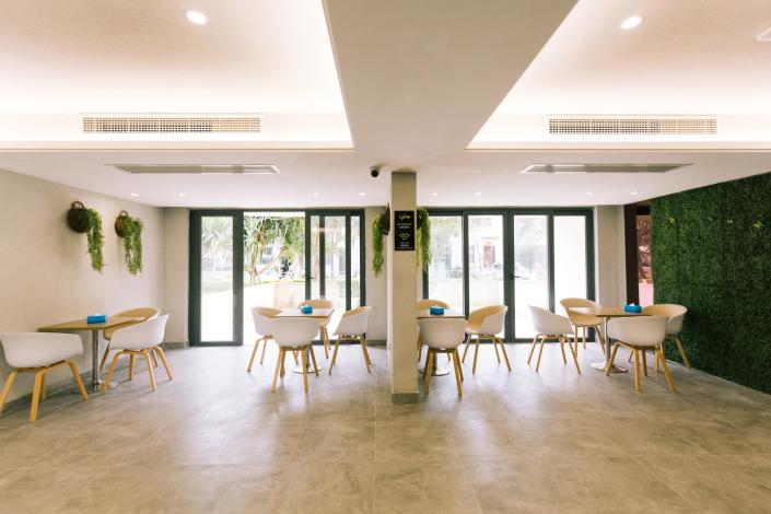 房间内智能温控系统、高速 WiFi、舒适床品配置齐全,部分房型还带休闲飘窗,午后晒着太阳读本书、喝杯茶,惬意十足。公共区域更藏惊喜:一楼 “海岛社交区” 可办公可小聚,偶尔举办的海鲜烹饪体验课,跟着本地大厨学做清蒸石斑鱼,让旅行多了份实用乐趣。