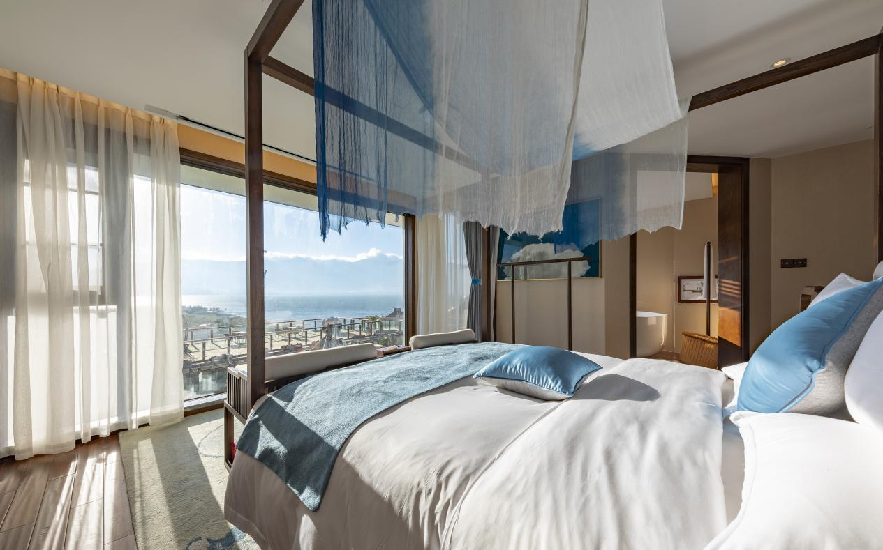 云南大理星月湾雅阁璞邸酒店(雅阁酒店集团旗下成员酒店)本身就是座 “可居住的大理美学馆”,白族扎染元素与现代简约风格无缝衔接,90% 客房推窗可见洱海全景,部分房型还带私人露台,清晨被洱海的浪声唤醒,傍晚坐在露台看夕阳为苍山雪顶镀上金边,随手拍出 “星月与海” 的浪漫大片。
