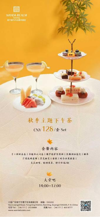 此次露营季,酒店精心筹备了丰富的餐饮选择。喜欢广式风味的食客可选择广式牛杂煲3-4人套餐,售价498元。套餐包含开胃凉菜3小蝶(泡椒藕带、手拍黄瓜、泡椒鱼皮)、广式牛杂煲1份、时令有机蔬菜拼盘、广式干炒牛河、秘制酱料4份、邕宁时令水果拼盘以及软饮(可乐、雪碧、芬达、手打柠檬茶、蜂蜜水果茶5选4),让食客在露营中尽享广式美味的醇厚。 若偏爱精致下午茶,酒店大堂吧推出的秋季主题下午茶套餐不容错过,每套128元,供应时间为14:00-17:00。套餐包含手工鲜虾春卷、金枪鱼吐司卷、佛罗伦萨坚果酥、焦糖奶油泡芙、椰香芒果乳酪慕斯、黑芝麻芝士蛋糕、时令水果拼盘,搭配美式咖啡、特调果茶、橙汁任选2杯,为秋日午后增添一份甜蜜与惬意。