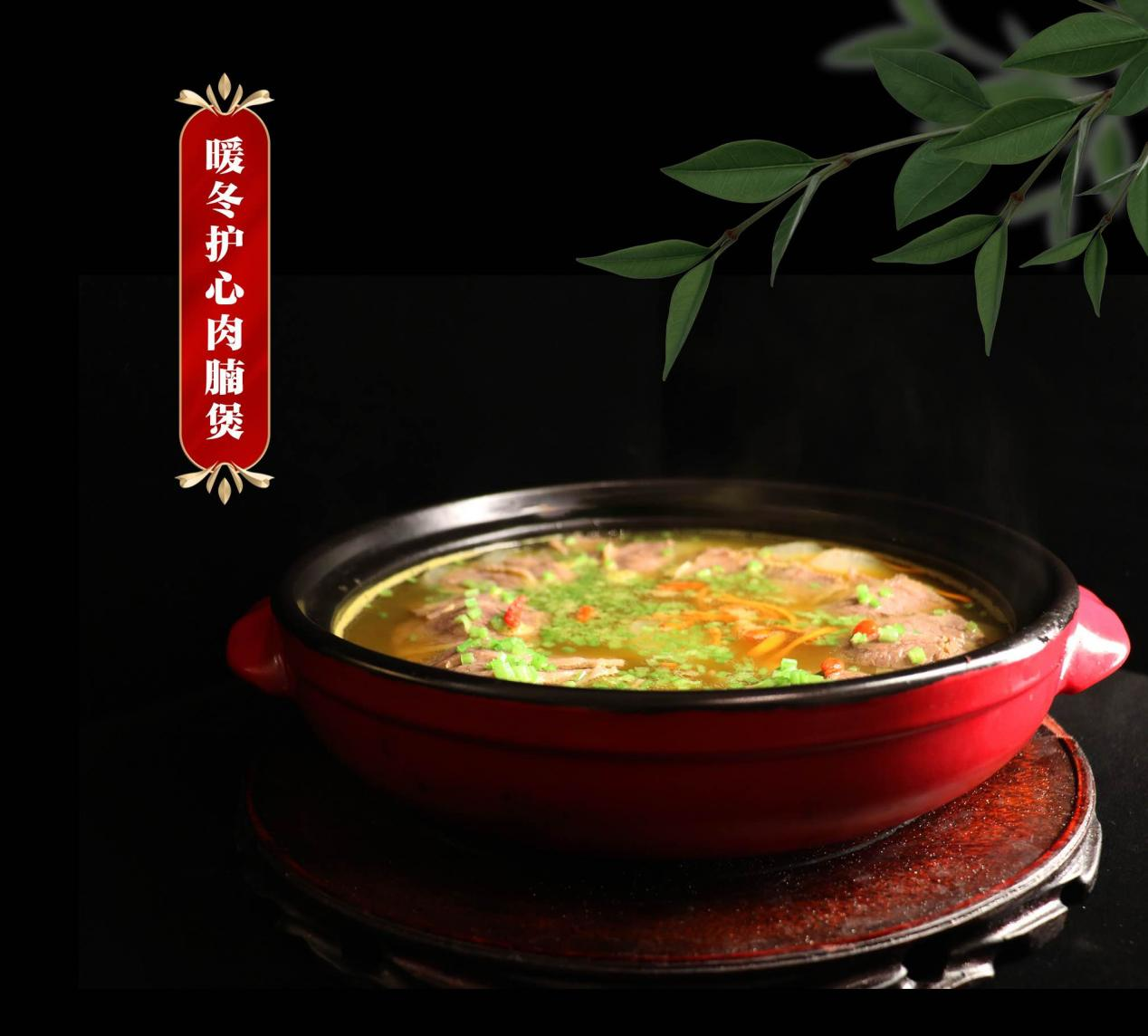 取阿勒泰牧场羔羊护心肉腩,佐以温宿核桃、和田红枣,加入西域古法香料与广式柱候酱共煨。肉腩软糯不柴,胶质丰盈,汤底浓醇中带着果仁香,是寒冬里最熨帖的守护。