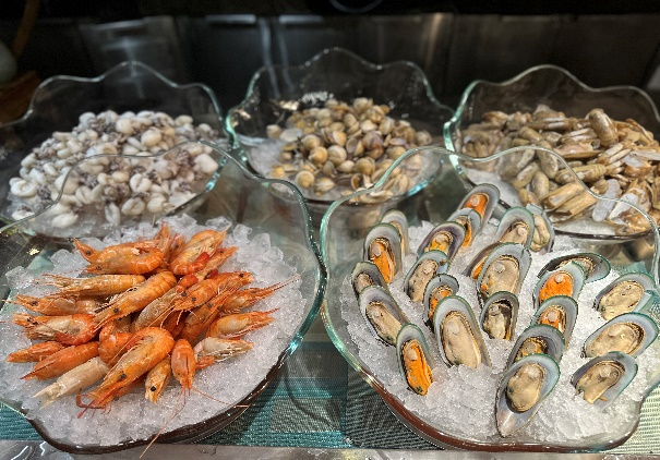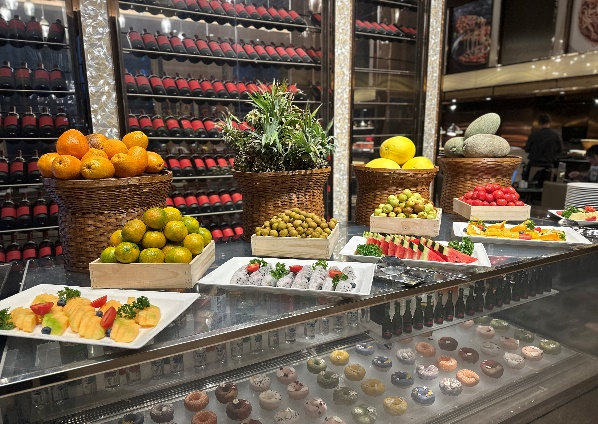 除核心牦牛肉外,自助餐厅构建了覆盖海鲜、肉食、素菜、甜品的全品类美食矩阵。罗氏虾、墨鱼仔、黑鱼片等海鲜鲜货无限供应,其中饱满带黄的罗氏虾咬开瞬间爆汁,白蛤熬制的汤底鲜醇浓郁;脆毛肚、黄喉等经典火锅食材脆嫩爽口,搭配现炸串、天妇罗等特色小吃,让肉食爱好者尽享狂欢。素菜区同样亮点纷呈,鞭炮笋吸饱汤汁自带海味,新鲜时蔬水灵清甜,与荤菜搭配实现暖而不腻的味觉平衡。甜品区特别融入兰州本土特色,牛奶鸡蛋醪糟糯甜暖心,冰糖炖雪梨润喉解腻,搭配芝士披萨、玉米汁等,为火锅盛宴画上圆满句点。