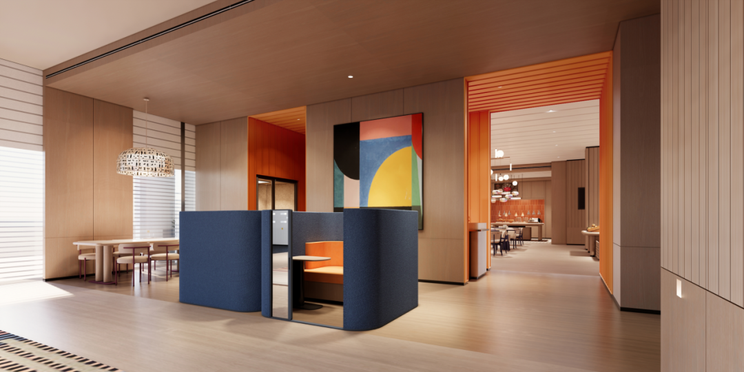 二是真正把“一店一设计”玩出了新花样。希尔顿欢朋除了在门店设计、产品体验上会融入属地文化之外,同时还把大堂变得灵活机动了:“欢迎区”使用岛台式智慧前台;“欢享区”可以进行商务洽谈或者休闲小聚;创新模块“Hi Corner”则围绕欢朋体验与欢小朋IP进行品牌周边打造,而这些区域的面积和位置可以根据物业情况的不同进行差异化调整。同时希尔顿欢朋6.0「欢悦版」新增亲子用餐区,并在取餐区增配了开合移门,可灵活调整桌椅布局,实现餐厅的多场景变换。
