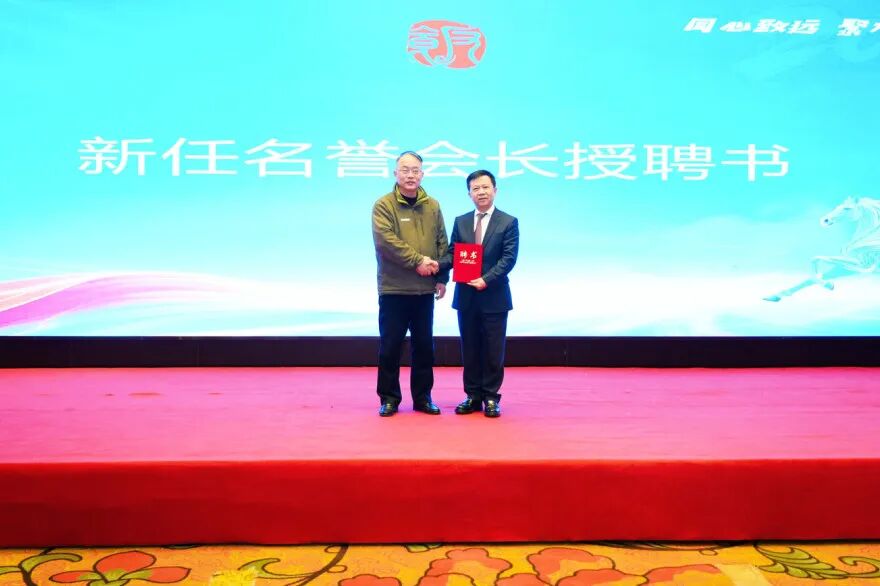 大会提名胡云波同志为名誉会长,授予聘书。