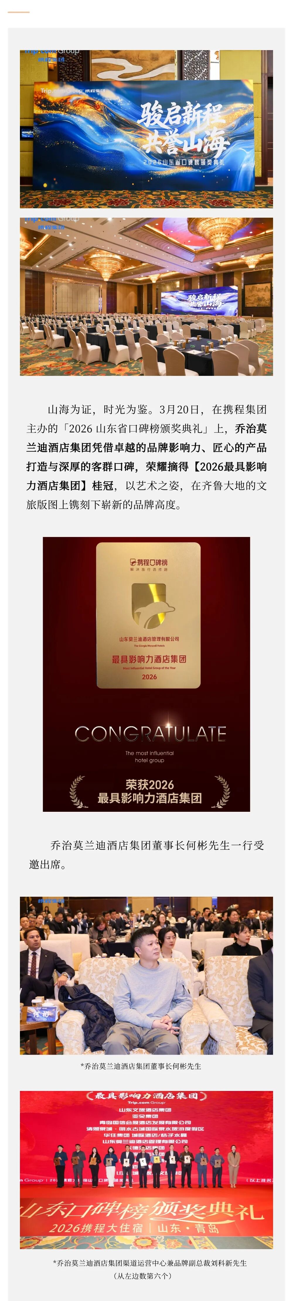 骏启新程,共誉山海|乔治莫兰迪酒店集团荣膺携程「2026 最具影响力酒店集团」