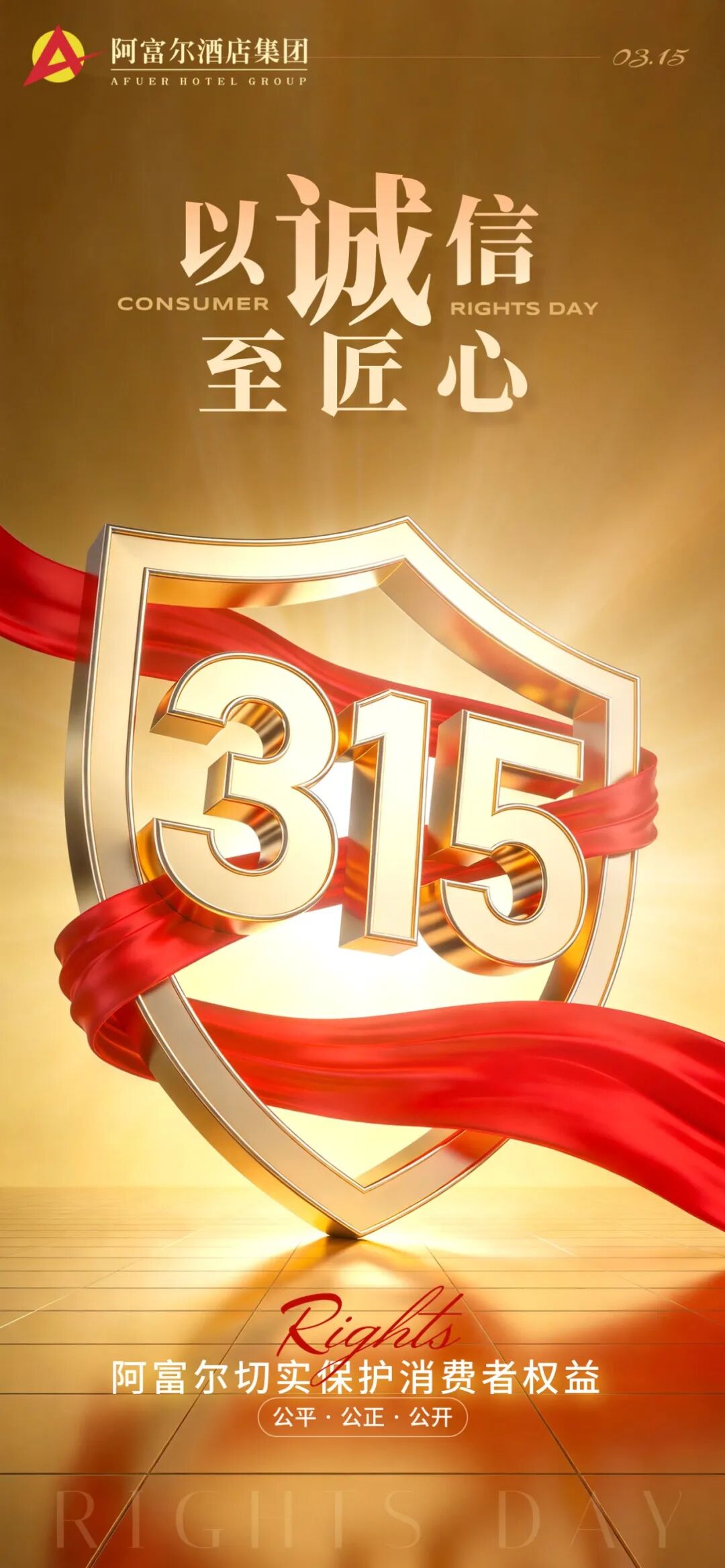 每年315,是消费者权益的守护日,更是阿富尔酒店集团坚守初心的检验日 自2007年诞生以来,我们深耕城市连锁酒店领域,以“诚信经营、品质为先”为底线,将消费者的每一份信任,都化作服务的标尺与前行的动力