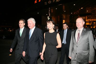 新闻发布会后,苏菲·玛索在北京万达索菲特大饭店总经理彦·亚历山大、法国驻中国大使苏和以及《超级女特工》导演让·保罗·萨罗米(依次从左到右)的陪同下,前往万达国际影城参加该片首映式。
