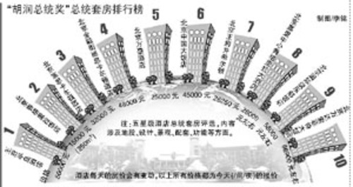 昨天,“胡润总统奖”颁布,王府半岛酒店、北京香格里拉饭店等10家酒店总统套房榜上有名。