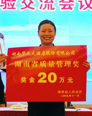 据介绍,湖南省质量管理奖是湖南省政府为表彰在质量管理方面取得突出成效的企业,引导和激励企业追求卓越质量管理经营,更好地服务社会、服务客户、推进质量振兴事业而特别设立的一个奖项,是湖南省质量工作方面的最高奖励。此次是第一次将此奖颁发给旅游服务行业,华天酒店成为业内第一个获奖单位。