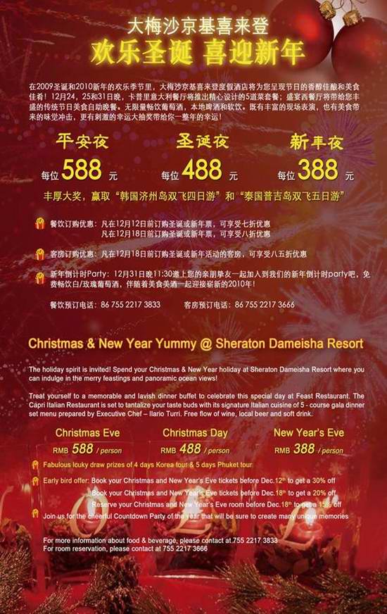 【迈点网】大梅沙京基喜来登度假酒店圣诞节特惠