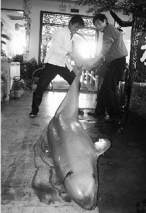 日照一饭店收到400斤沉大鱼 疑为鲸鱼