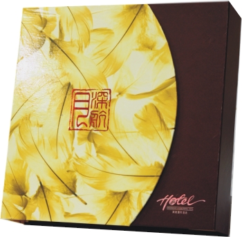 礼盒装,内含深航特色机模一个和6个月饼。口味为:蛋黄白莲蓉月饼、核桃乌枣月饼、金腿伍仁月饼、蛋黄青稞月饼、蛋黄螺旋藻月饼、卡布奇诺月饼各1个。