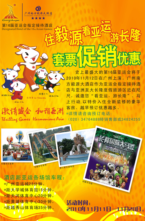 住毅源看亚运游长隆 套票促销优惠中
