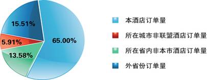 通过这个图我们可以看到,一家单体酒店的会员订单,会有40%左右的在异地产生,而这些剩余价值目前都浪费掉了,而我们正通过呼叫中心做的一个资源整合来推动这件事情。
