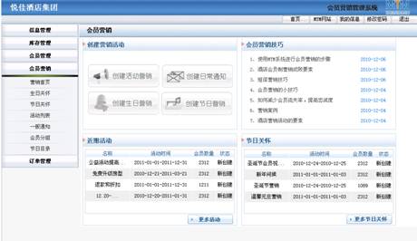 1、 MTM会员营销系统,帮助积累会员建立良好的基础,这个四星级五星级所谓的协议客户的营销和管理。另外通过追踪会员的动态防止会员流失。第三我们做一些有针对性的会员关怀、会员营销,提高会员的忠诚度和回住率。