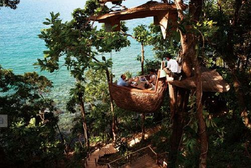 The Treepod树舍坐落于Six Sense Soneva Kiri度假村的最佳瞭望点,沿海滨小径而建,客人坐进外形恍如鸟巢、铺有舒适坐垫的藤制树舍,系好皮革安全带后,树舍即缓缓上升至高耸的本土 massang树树顶。在树舍渐渐上升之时,绑上吊索的“空中”服务员即由山腰上的小平台迅速飞至,奉上佳肴。于宁静怡人的树舍品尝早餐,乃是新一天的理想之选;至于午膳时间,树舍则提供荫蔽的避暑之处,客人更可于此私密独特的地点欣赏醉人日落。入夜后,可一尝彷佛置身于大自然怀抱中享用烛光晚餐的超凡体验。树舍提供的餐单均按照丛林主题而设,包括“树冠小食”、“觅食之篮”及“树林美食”,而食材则主要来自度假村自设的有机种植园或度假村的所在之处—沽岛。当置身高悬树顶的树舍之内,可于此俯瞰沽岛(Koh Kood)四周平静清澈的海水,间中亦可见松鼠身影或蝴蝶飞过,枝叶随风轻轻摇曳,彷佛与世隔绝;这定必成为旅行者毕生中最难忘的用餐体验之一。(国际品牌资讯)