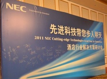 2011年3月15日,NEC (中国)有限公司IT/NW 平台产品事业部暇借上海外滩半岛酒店举办“2011 NEC 先进科技带你步入明天-- 酒店行业解决方案研讨会”。吸引了包括洲际,喜达屋,雅高,万豪,凯悦等著名品牌连锁酒店IT管理人员等80位来宾参加。
