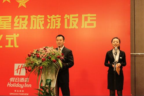 在授牌仪式现场,青岛景园假日酒店总经理高涛表示将以“创星挂牌”为契机,促进酒店争先创优、打造特色、树立品牌,牢固树立“以人为本”的管理理念,进一步优化硬件环境!将始终以创建“客人挚爱的杰出酒店”为己任。并且希望两家酒店一起努力,为城阳酒店业的发展做出更大贡献!