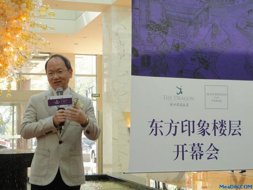杭州黄龙饭店总经理杜宏新致辞说:“这是大陆酒店业首次尝试跨界合作,以中国陶瓷艺术为元素来打造酒店的主题式客房,这有别于大部分国际酒店系统采用标准化设计的做法,可说是中西方文化艺术碰撞后产生的文创火花!”