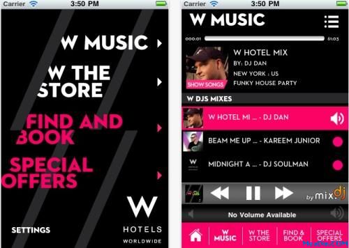 5月20日W酒店的母公司喜达屋酒店集团在iTunes上发布了这个免费的iPhone应用程序。该应用程序会自动监测到客人的位置,并展示出附近16或17英里之内的酒店。例如,客人可以把酒店信息发送至Twitter、Facebook和foursquare,以及查看优惠信息(例如获得W酒店TheStore的八折购物优惠)。