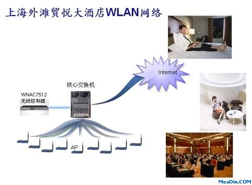 根据上海外滩贸悦大酒店的建设要求,将实现对整个酒店客房,会议中心,休闲酒廊等全部区域无线信号覆盖;在商业化/信息化时代, 酒店无线网络已经成为高端酒店的一项重要服务, 而更多的商务人士在酒店内更愿意使用高速,方便的无线网络,所以贸悦大酒店的无线网络必须是高品质的,多业务和多应用的无线网络平台,它具有以下网络特性: