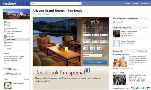 凤凰城亚利桑那度假酒店(ARIzona Grand Resort)现在提供了一个Facebook预订引擎,他们采用了Sabre Hospitality Solutions新的社交...