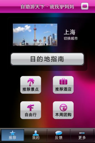 “目的地的丰富信息”、“推荐的景点和酒店”、“每周的团购”,驴妈妈iphone客户端堪比一本精心编辑的旅游杂志。同时,客户端依托驴妈妈旅游电子商务的优势,提供便捷的“景点门票预订”、“酒店预订”、“自由行产品预订”、“订单管理”等服务。