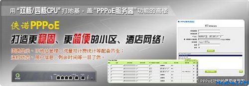 无论是以前的ADSL宽带还是现在的FTTx光纤,其实大部分的小区、酒店网络管理都是通过内网的PPPoE服务器来实现网络共享上网,按时间或流量交费,既方便经营者管理网络用户,也方便用户自身享受灵活的网络服务。侠诺PPPoE因有“双核、四核CPU”罩着,对酒店和小区网络来说,就可能会起到更加适用的效果。