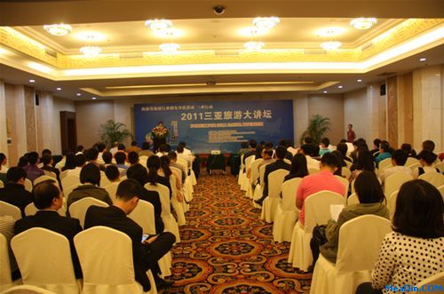2011年12月20日下午3时,由三亚市旅游发展委员会主办,三亚市旅游协会承办的“海南旅游创先争优活动三亚大行动之2011三亚旅游大讲坛第一讲”在三亚湘投银泰度假酒店开讲。来自三亚市50多家旅游企业的总经理、副总经理、营销总监、部门主管及5所本地院校的师生共200多人参加了论坛。