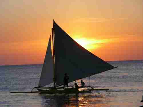 早餐后,自由活动。如果喜欢水上活动的朋友,可以自费选择长滩出海游。乘坐菲律宾人智慧结晶的螃蟹船,一人一组浮潜用具,让大家饱览那色彩缤纷的珊瑚和那 2500 多种海洋热带鱼,我们还会为大家准备好渔具感受一下泛舟垂钓的感觉,运气好的话,您会有不少的收获哦!等大家玩累了,前往景致优美的海湾,享受精心安排独具风味的海鲜烧烤BAR.B.Q盛会(参加自费)(含饮料)。在大自然美景下,享用一顿别具风格海岛午餐。下午2点左右送您回酒店稍作休息,养养精神。傍晚是长滩岛最美,也是最适合活动的时候。在导游的带领下,来到美丽的海边,自由组合分成小组,搭乘我社特别赠送的长滩特色的风帆船,由当地人掌舵,带您环游碧蓝的大海。此风帆船为赠送项目,如不参加属于自动放弃,费用不退。