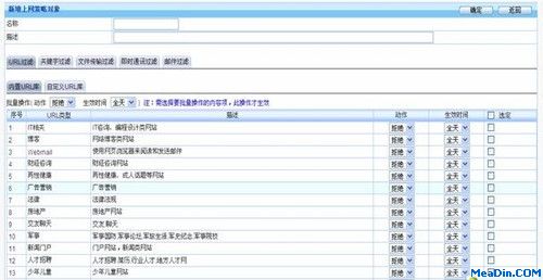 NETSYSAC-Q上网行为流量管理提供了细致的上网行为流量管理,内置1500万条url库,对用户的上网行为进行细致而灵活的管理,进而提高员工的工作效率,避免机密信息的泄漏。上网行为部分功能如下:
