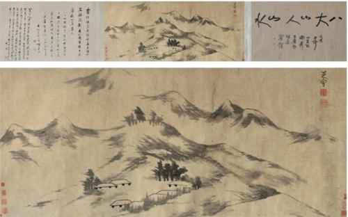 《八大山人山水卷》为八大山人晚年作品,两方印章均为1700年后,即八大山人70岁后所用。74cm×173cm的尺寸是迄今为止所知存世尺幅最大的八大山人的山水作品。不仅如此,还有七方收藏印章证明了《八大山人山水卷》的流传有序,启功、谢稚柳、唐云还在该画上题写鉴定、鉴赏手迹。