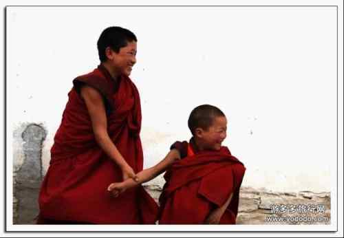 那些小喇嘛毕竟是孩子,虽然穿着厚厚的红衫,可爱与稚气却是毫无保留地呈现。