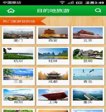 除了周边游、国内游、出境游以外,小编发现“目的地旅游”也是该客户端的一大亮点。在这里欣欣旅游网把线上受游客喜爱的“热门旅游目的地”页面“移植”到了手机上来,让出行者可以根据目的地城市来进行旅游搜索,给游客查询及预定线路都带来了极大的便利。