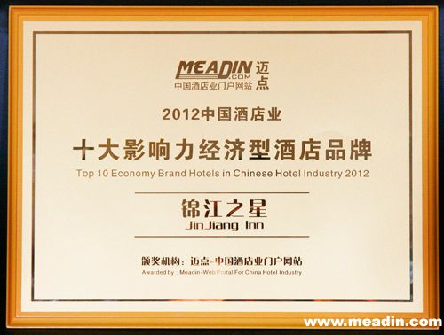 锦江之星获2012年“十大影响力经济型酒店品牌”