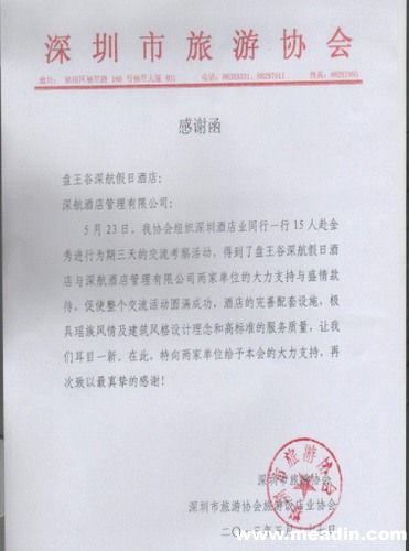 美味可口的瑶家特色美食、独具风情的瑶家特色服务礼仪、神奇无比的瑶医瑶浴文化、精彩绝伦的瑶族民俗表演,给每一位嘉宾都留下了深刻的印象。在考察期间,各位专家对盘王谷深航假日酒店完善的服务设施和专业周到的服务水平给予了高度评价。深圳旅游协会在返深后还特意发来感谢函,对深航酒店管理公司及盘王谷深航假日酒店表示感谢。